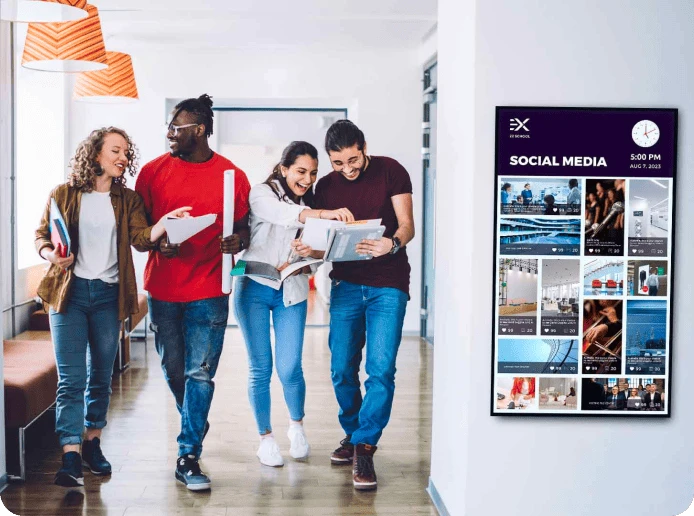 Show off your social media feeds & get students, staff, and visitors interacting through apps like Walls.io & Fugo Social Wall.